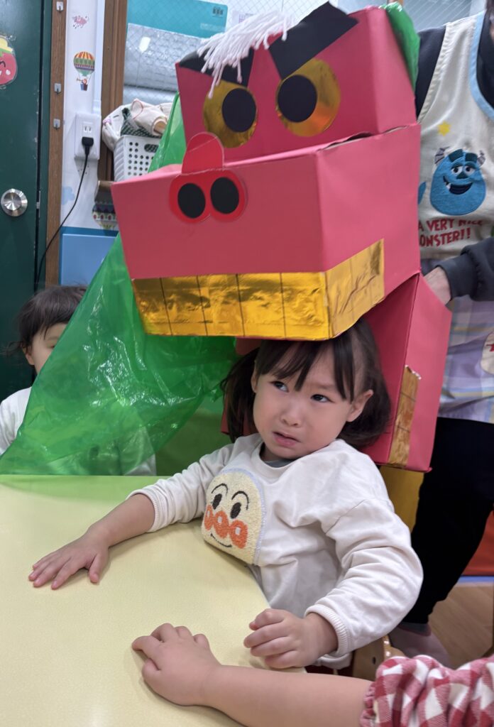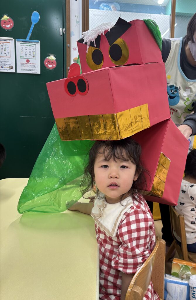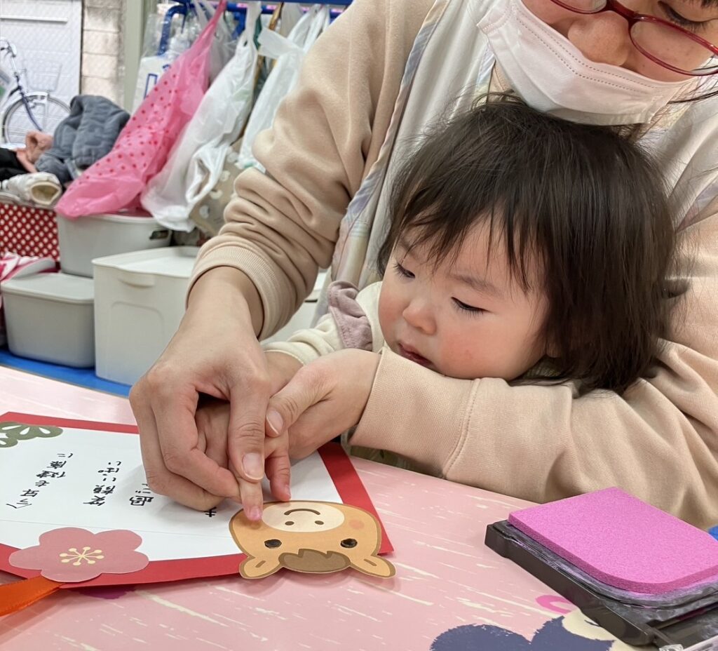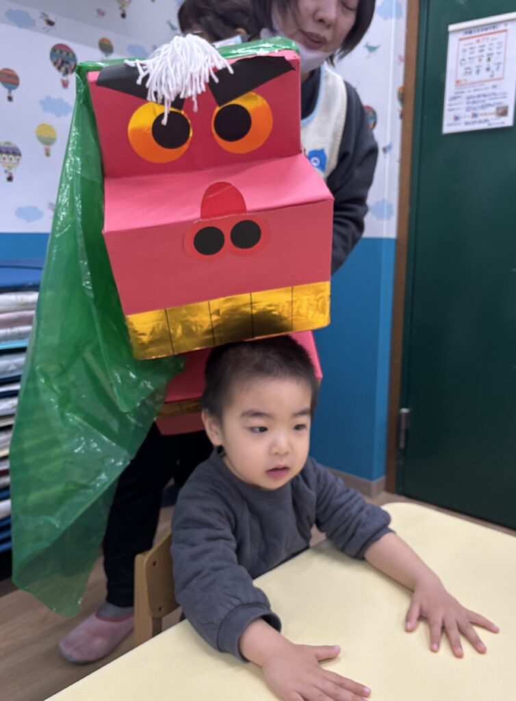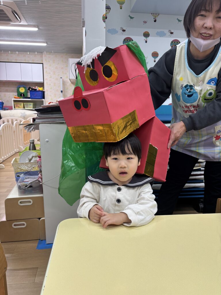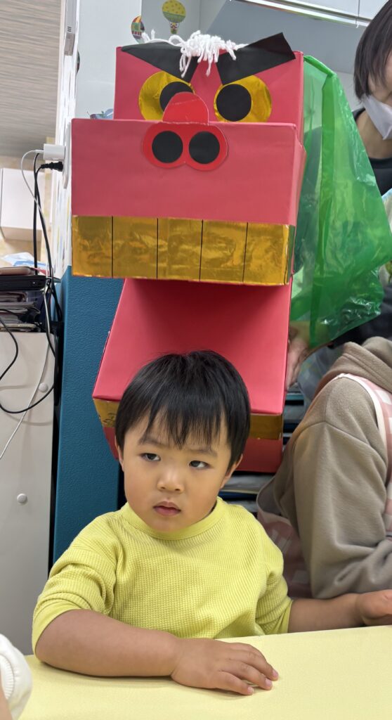 獅子舞に邪気払いをしてもらいました。健やかに成長してね!!
