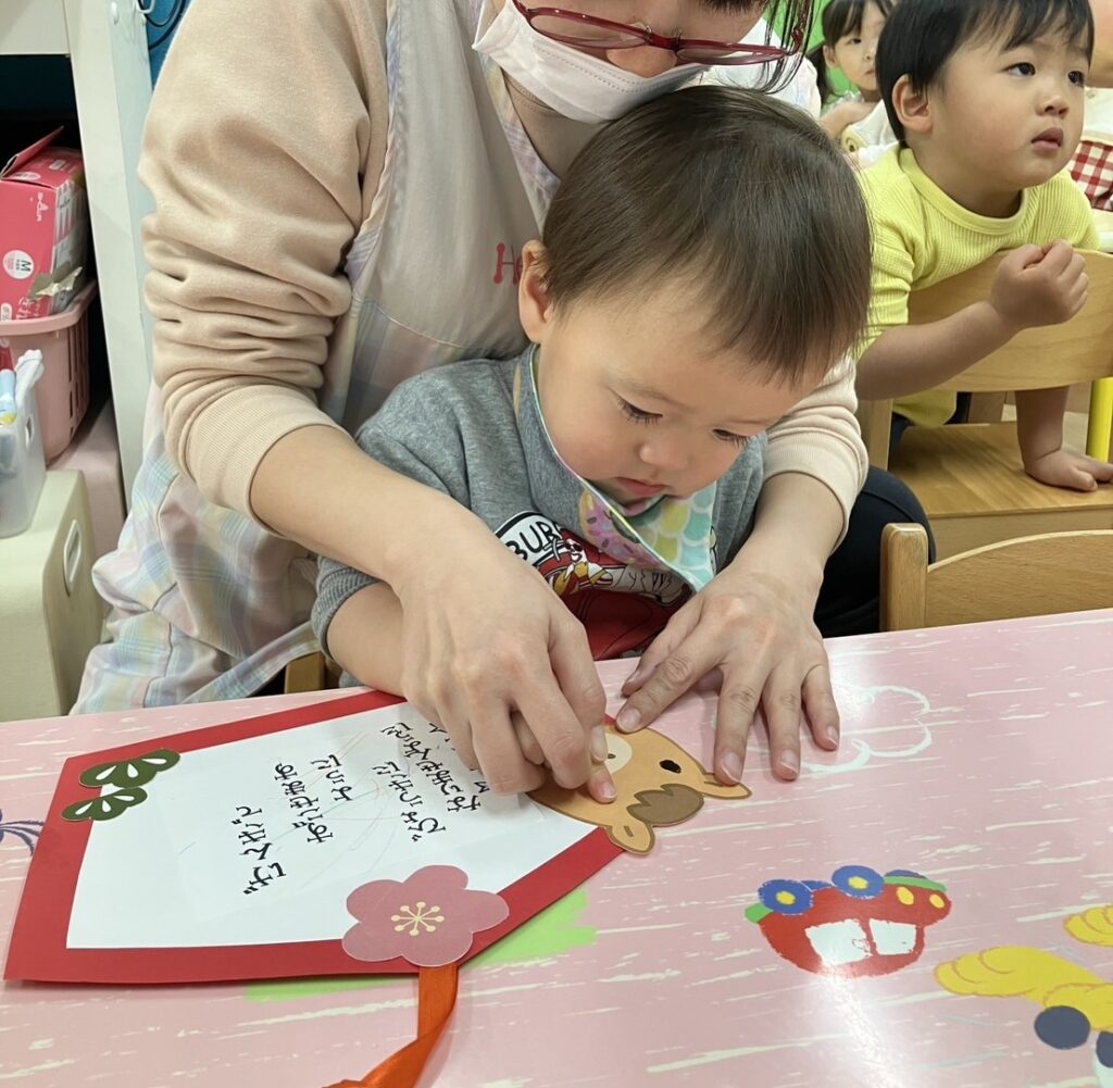 お願い事を書いた絵馬を制作しました。願い事通りに過ごせますように…