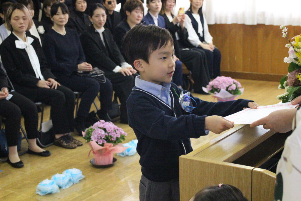真剣な表情で証書を受け取る姿は本当に立派で、入園したばかりの頃を思い出すと自然と涙が溢れます。
