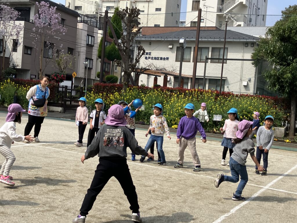 ドッジボールが終わった後は園庭で一緒に遊びました。