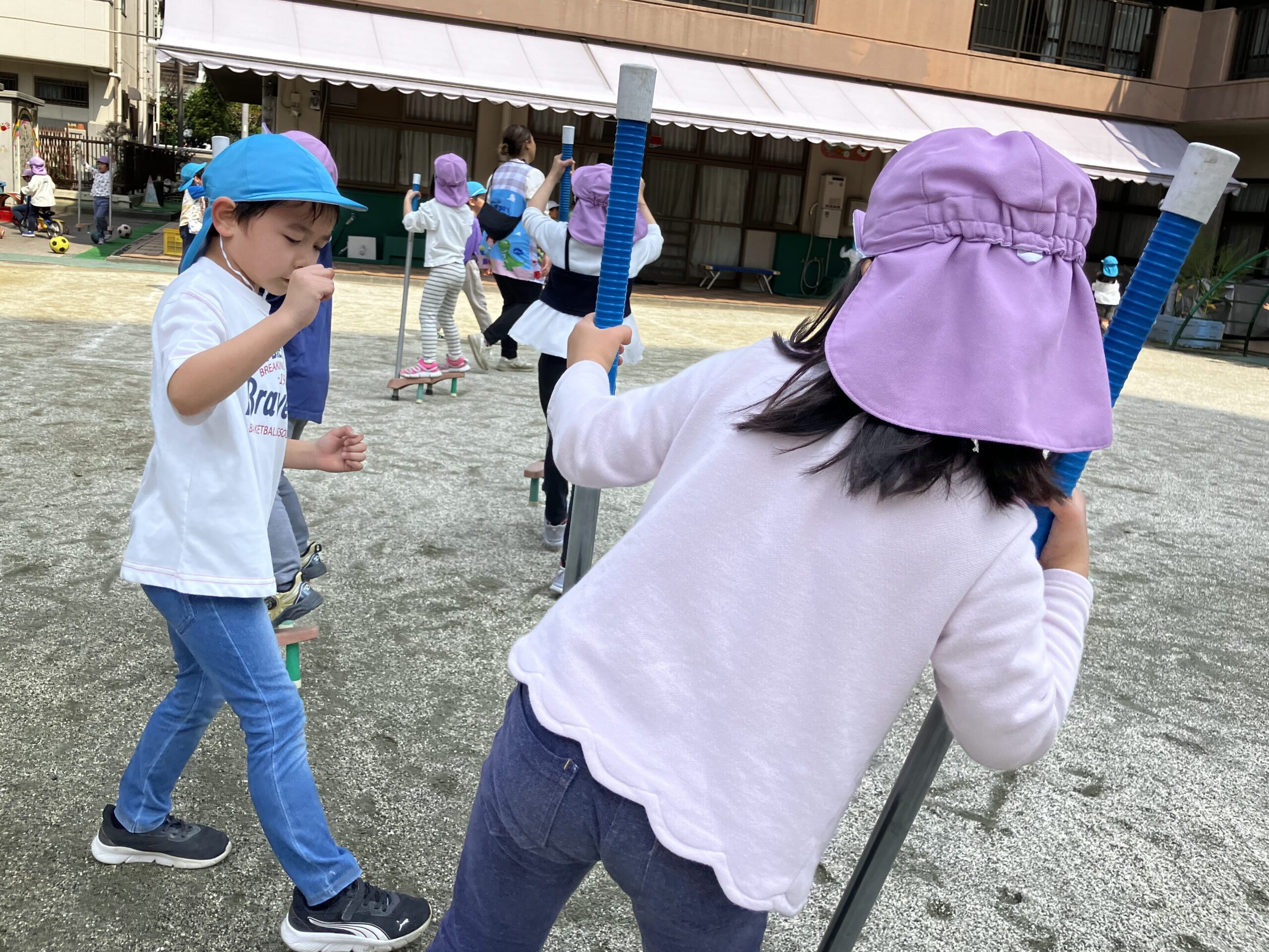 でもいざ試合が始まれば真剣な表情で戦いました。いつもと違う賑やかな園庭の雰囲気を、全身で楽しんでいました。
