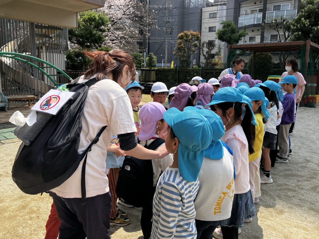 お見送りの時には「ありがとう!」と折り紙のプレゼントを渡した後、ハイタッチをしてお別れしました。