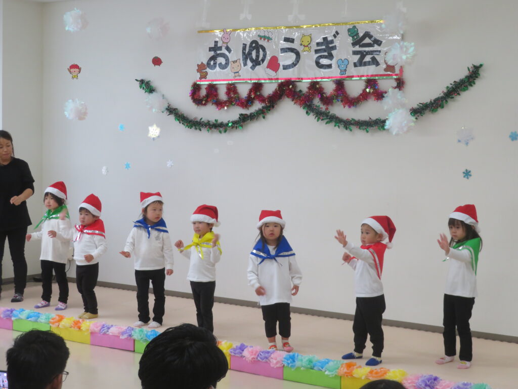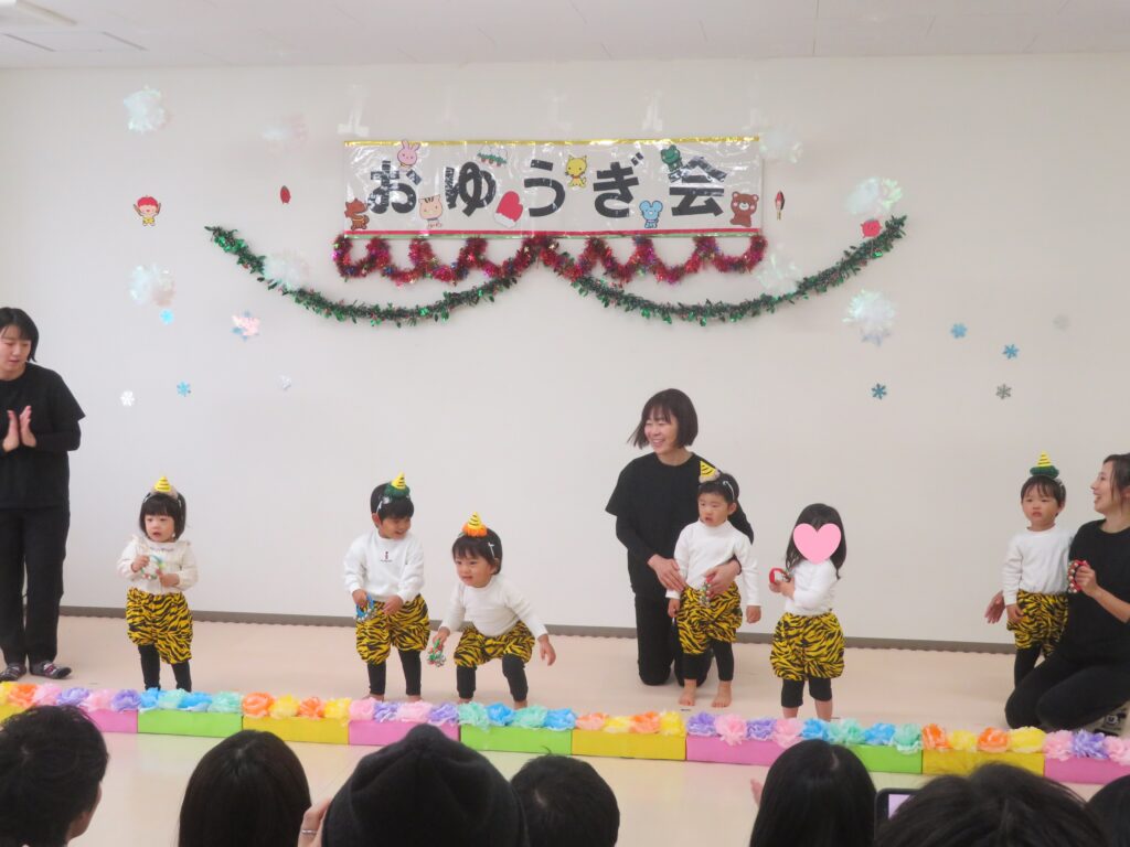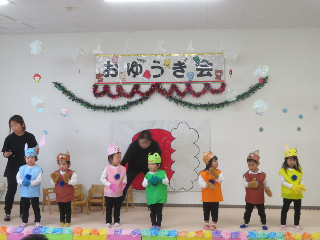 お遊戯会 2025-12-26 20日にお遊戯会がありました。 保護者と離れる時泣いてしまう子もいましたが、本番はみんな頑張りました! ひよこ組、初めてのお遊戯会でしたが楽しく参加できました✨ りす組さん、かみなりさまとおべんとうバスに変身⚡🚌 うさぎ組、緊張しながらも大きい声でセリフが言えていました😊 みんな最後まで頑張りました💕