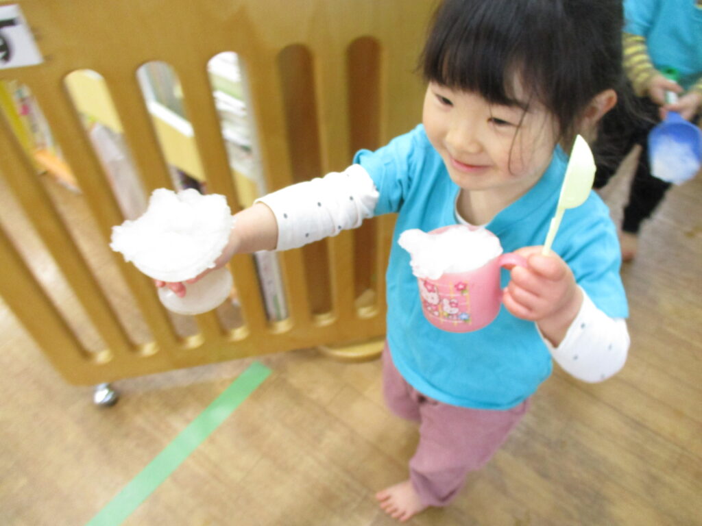 つめたいね~と、手を赤くしながらケーキやかき氷を作っていました🍧