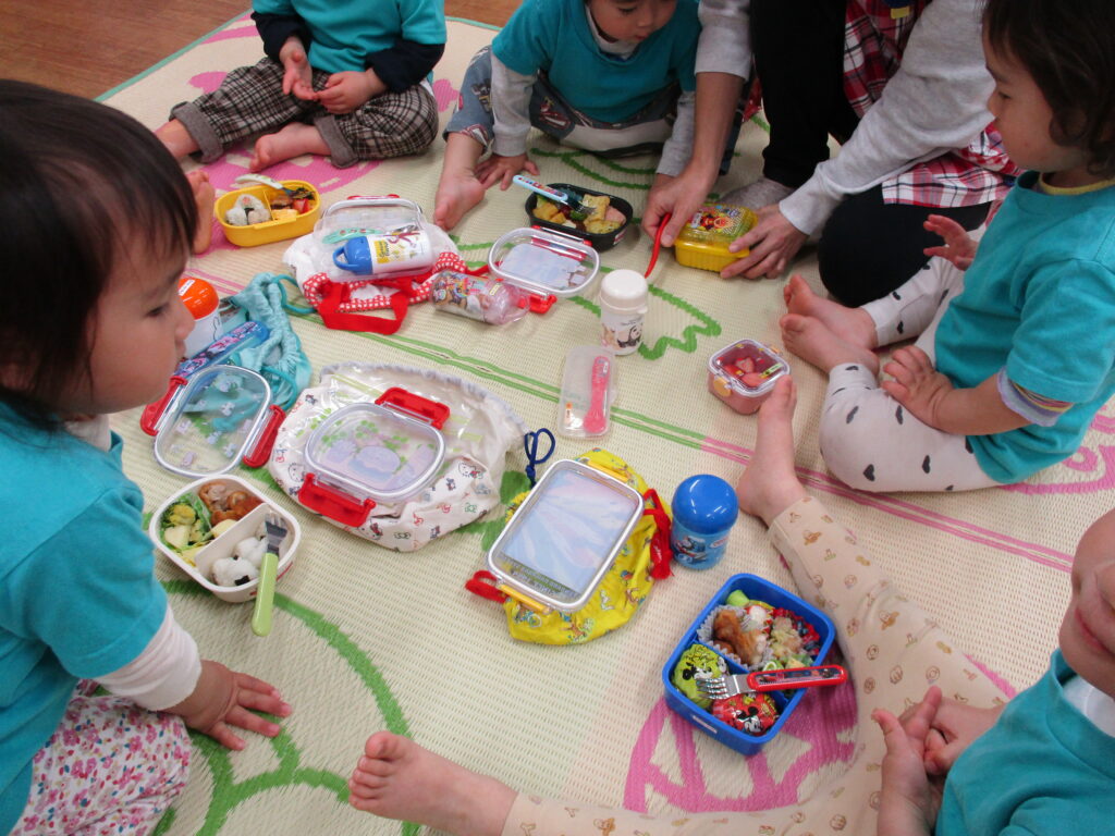 はな組さんほし組さんはゴザに並んでみんなでいただきまぁ~~す🍱