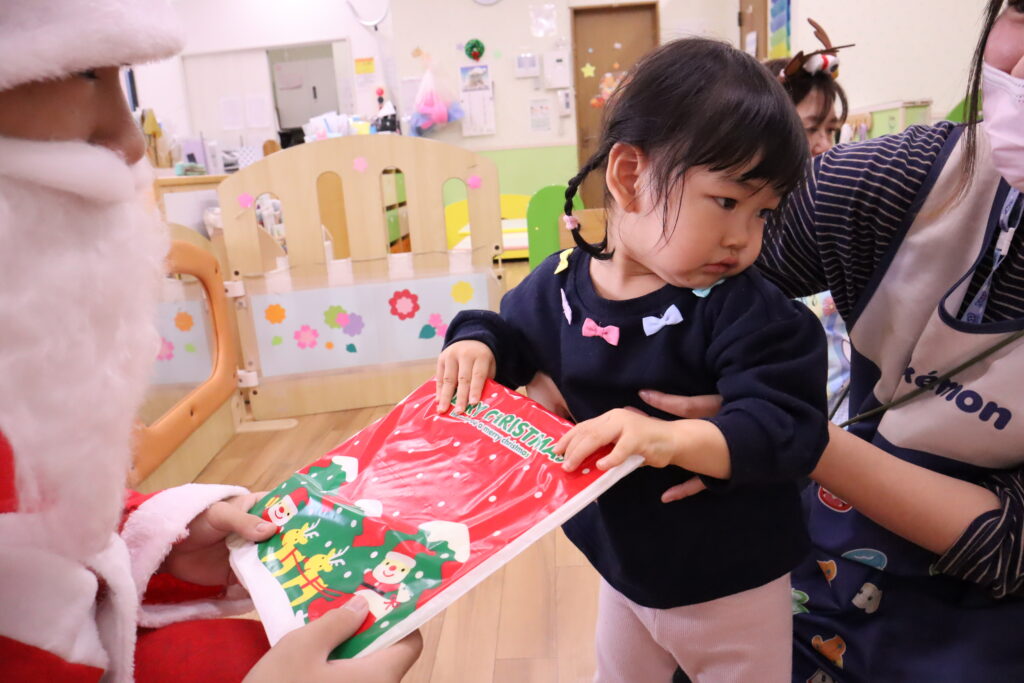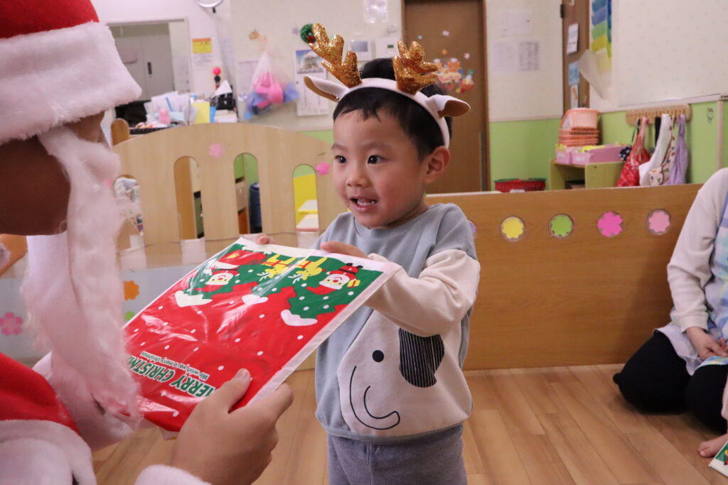 楽しみにしていたサンタさんがいざ登場するとどきどきした表情の子もいましたが、、、