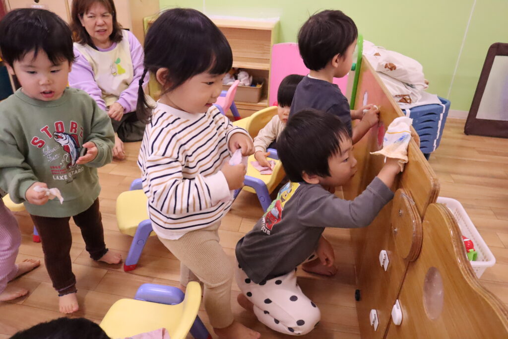 拭くところがなくなると子ども達自らいろんなところを拭いてくれました☆彡