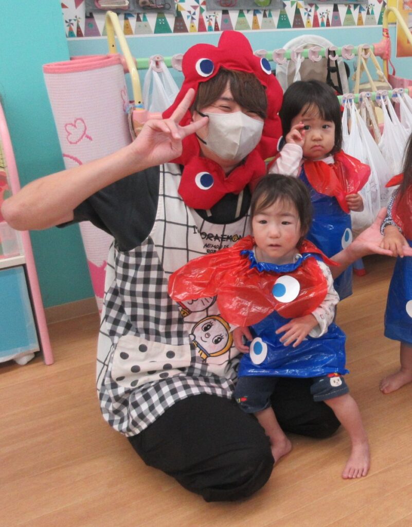 0~2歳児組は全員みゃくみゃくの衣装を、3~5歳児は魔法使いの衣装を着ました。