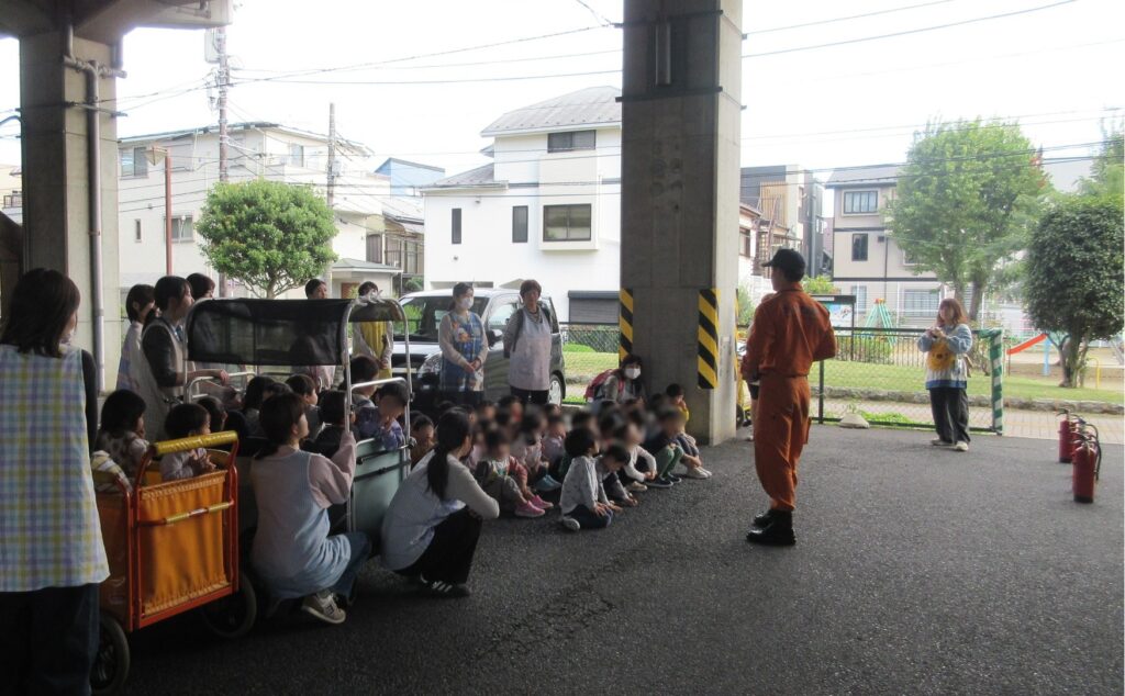 今月の避難訓練は、消防署の方の立会いのもと行いました。