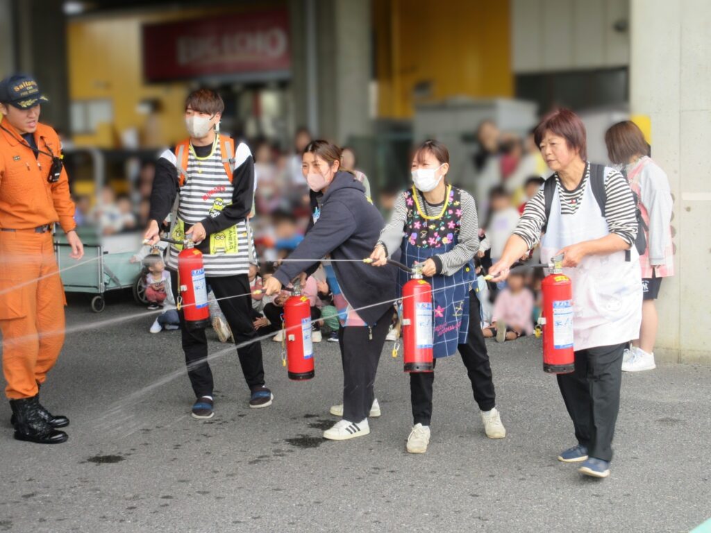 避難後は、職員が水消火器を使用しての消火訓練もしました。
