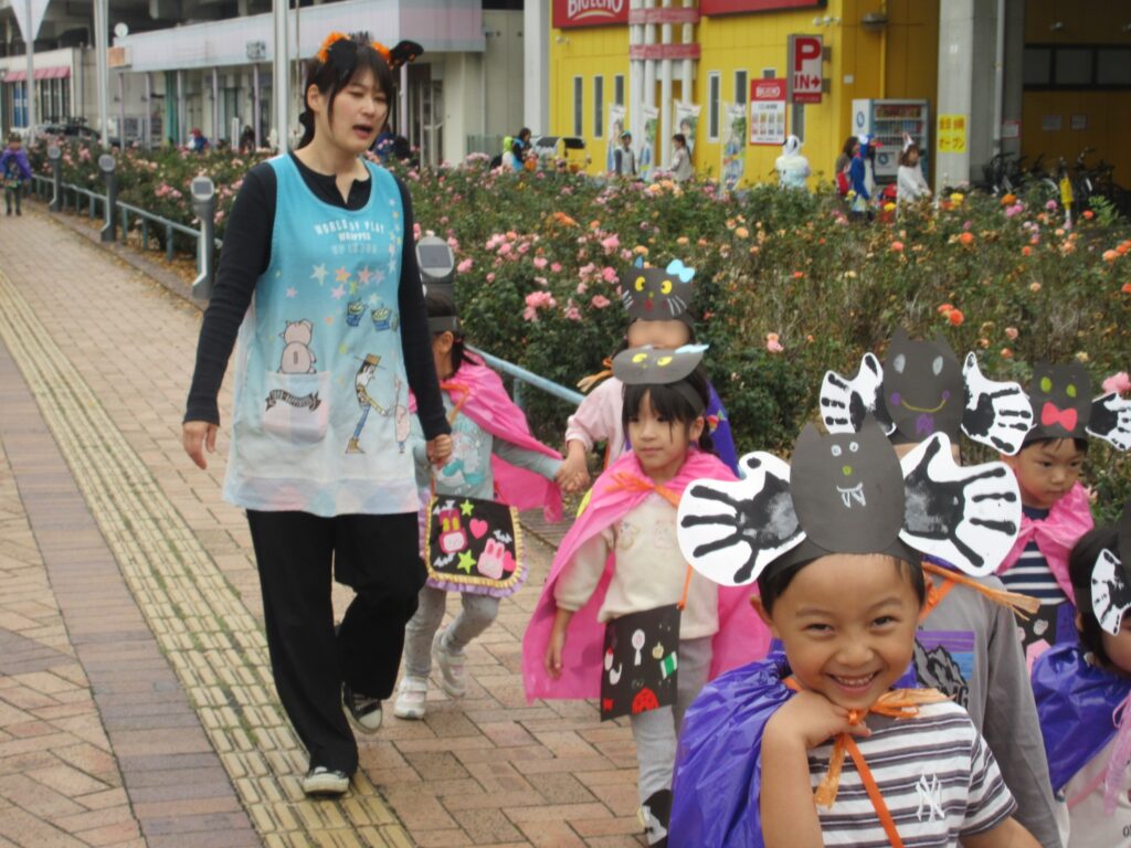 ハロウィンでは、保育園の周りを仮装パレードしました。