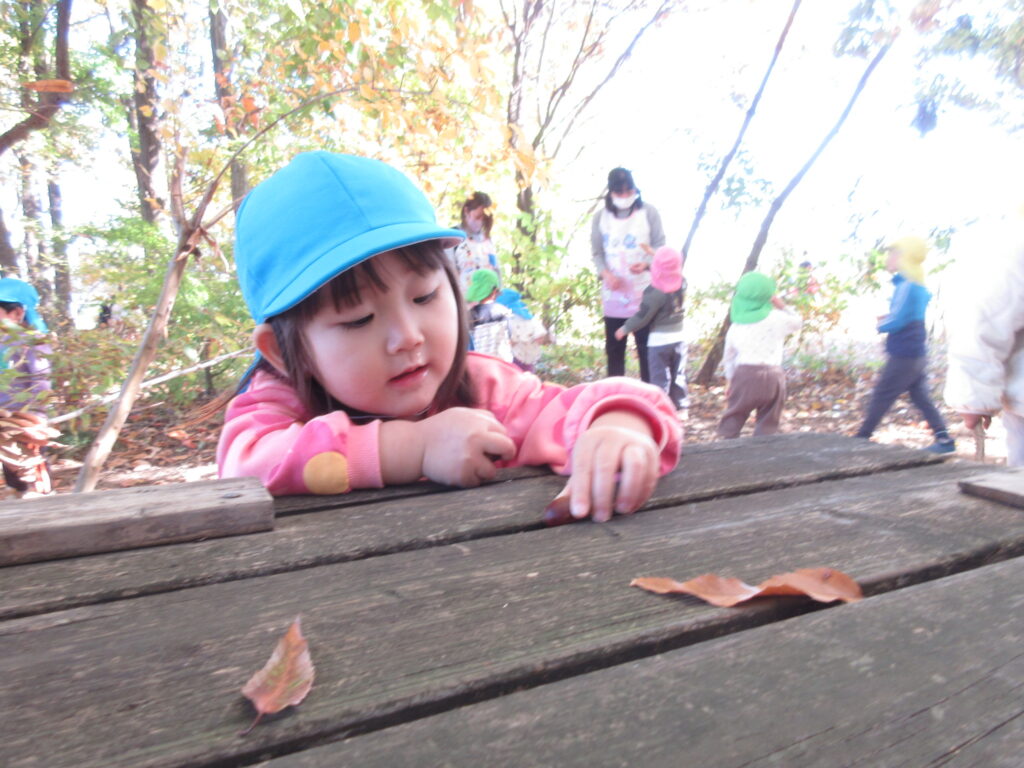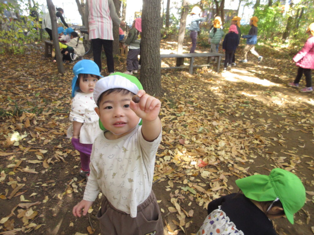 きれいに色づいた木々を見たり、木の実を拾ったりし、秋を感じながら過ごしています。