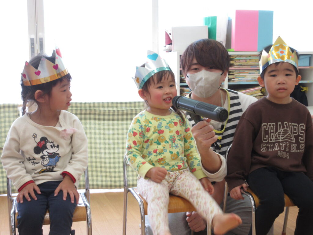 お誕生会では、11月生まれのお友達をみんなでお祝いしました。