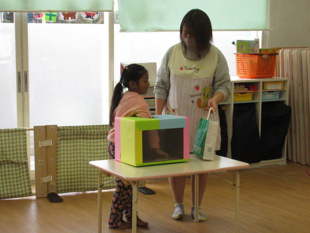 今月の出し物は、『はこの中は何かな?』というクイズです。