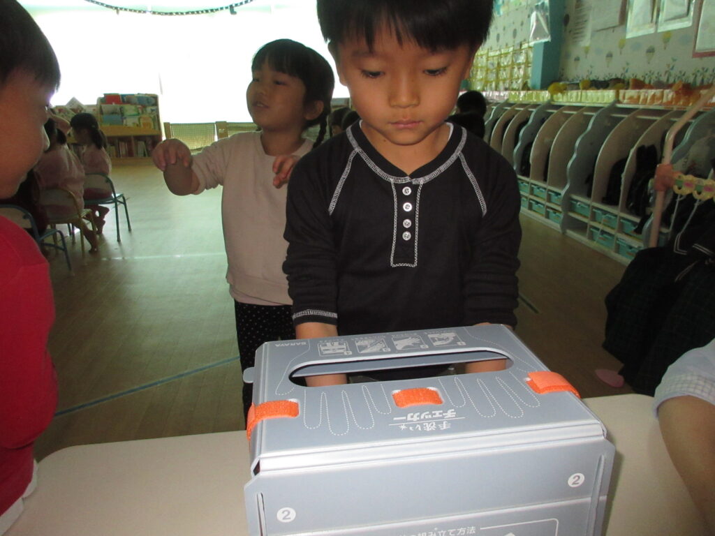 びっくりした子どもたちは、「光った~」「ばい菌ついてる!」と、大騒ぎです。