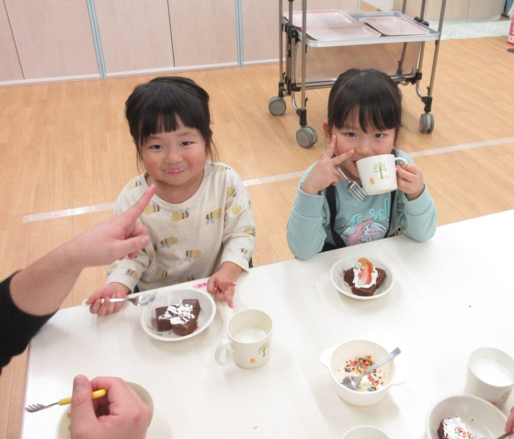 幼児組のお友だちは、自分でケーキにトッピングをしました。