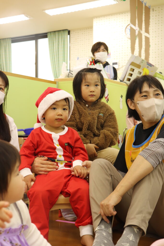 こちらは1歳児クラス。サンタ率高めです!