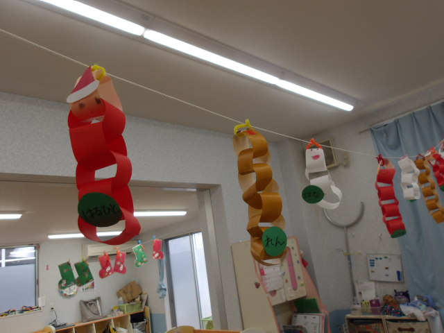 大きい子のクラスも小さい子のクラスも、サンタさんに会えるのを楽しみに作りました。