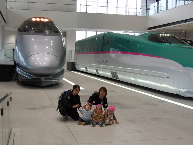 新幹線と一緒に記念写真!ひよこ組さんと比べるとサイズの差にビックリしますね