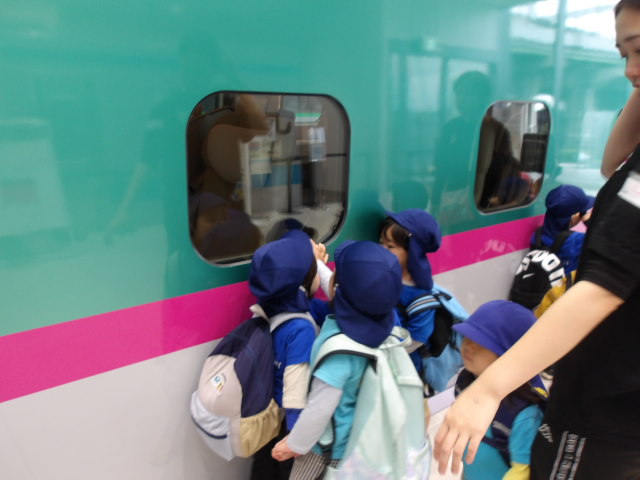 はやぶさの中も覗いて「お椅子ある」「乗った事ある!」と真剣な様子の子どもたちでした。