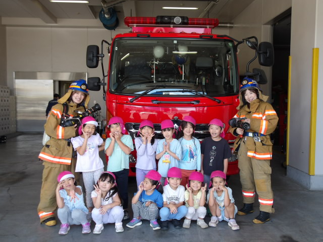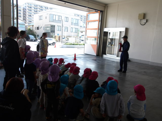 勤労感謝もかねて、近くの消防署に幼児3クラスで見学に行ってきました!