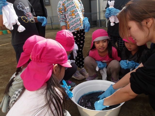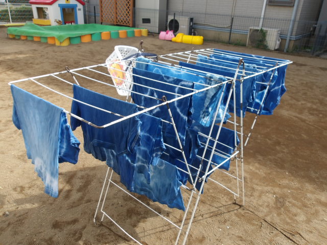 今年らいおん組は運動会で着るTシャツを藍染で作ることにしました。
