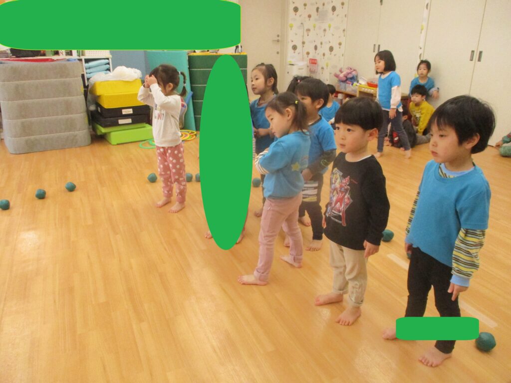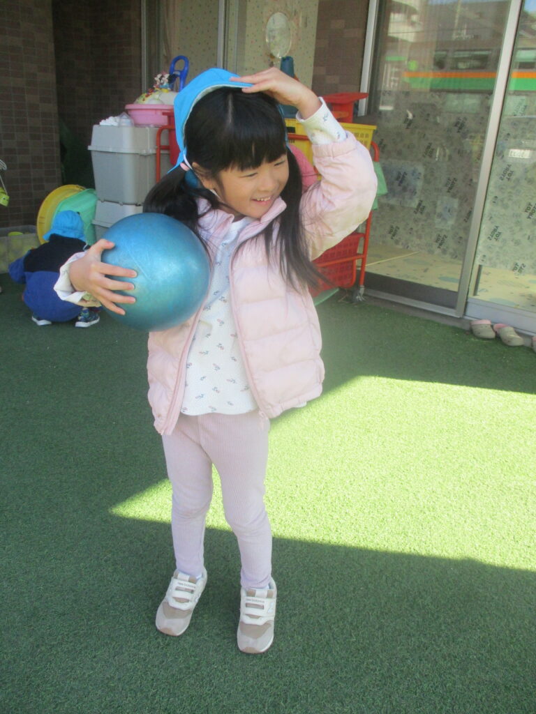 体操の時間ではじめてコロコロドッチボールに挑戦したよ!当たらないように逃げるが勝ち★