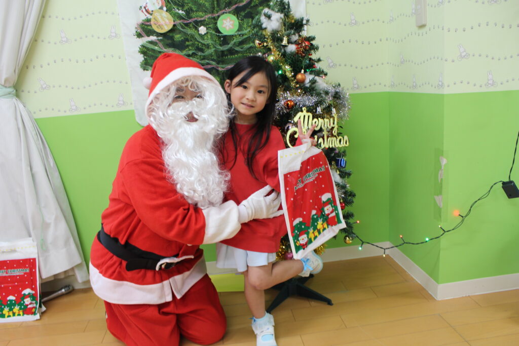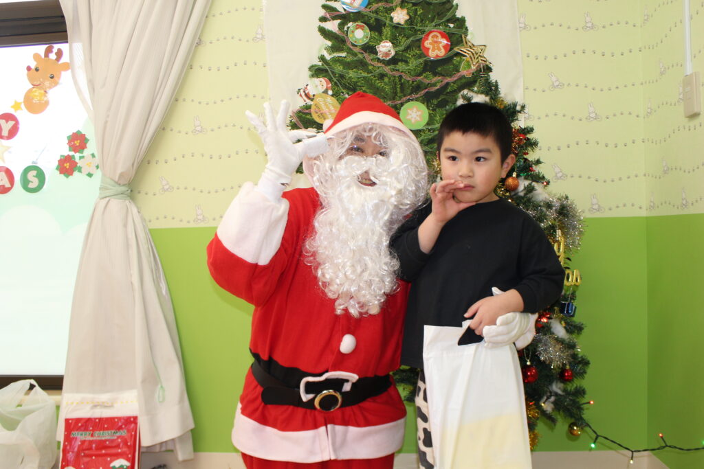 泣きながらもしっかりとプレゼントを受け取る子や、「ありがとう」とお礼を言いながら笑顔で受け取る子がいました。去年は泣いていたけど今年泣かずに会うことが出来ている子がいて成長を感じました!
