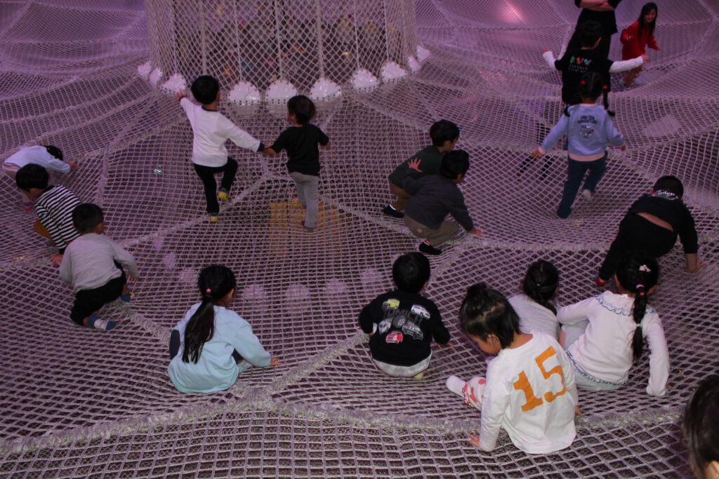 次は、アスレチック。1階から3階までの網のタワーを行ったり来たり。ゆらゆら揺れたり、滑り台のように滑ったり、たくさん遊べて大満足です♪