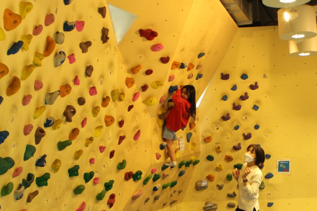 4,5歳児は特別にクライミングに挑戦。小学生コースもへっちゃら。腕の筋肉や指の力が育っていますね!