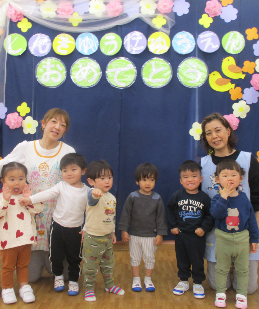 今年は0歳児5名、1歳児4名、3歳児1名の計10名の新しいお友達が加わってのスタートです