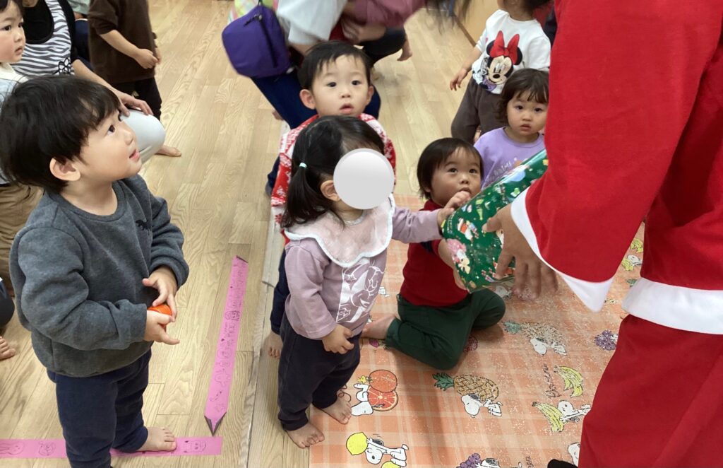 乳児さんもお部屋に来てもらって、プレゼントをもらいました!!