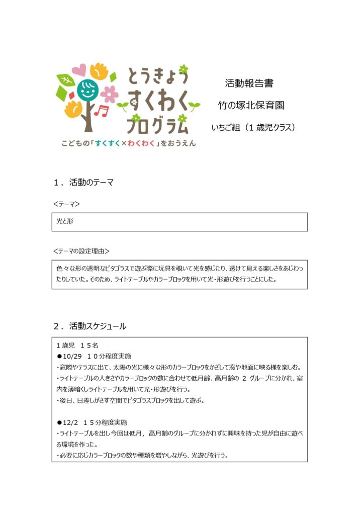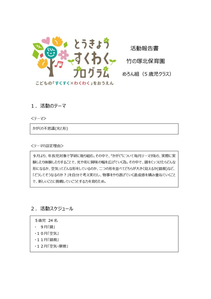 とうきょうすくわくプログラム 2026-01-30 とうきょう すくわくプログラム活動報告 とうきょう すくわくプログラムとは? 幼稚園や保育所において、子供たちが好奇心や興味を持って、わくわくしながら遊び、学べるよう応援する取り組みです。取り組みを通じて、子供たちの自己肯定感や思いやりといった豊かな心の育ちをサポートしていきます。