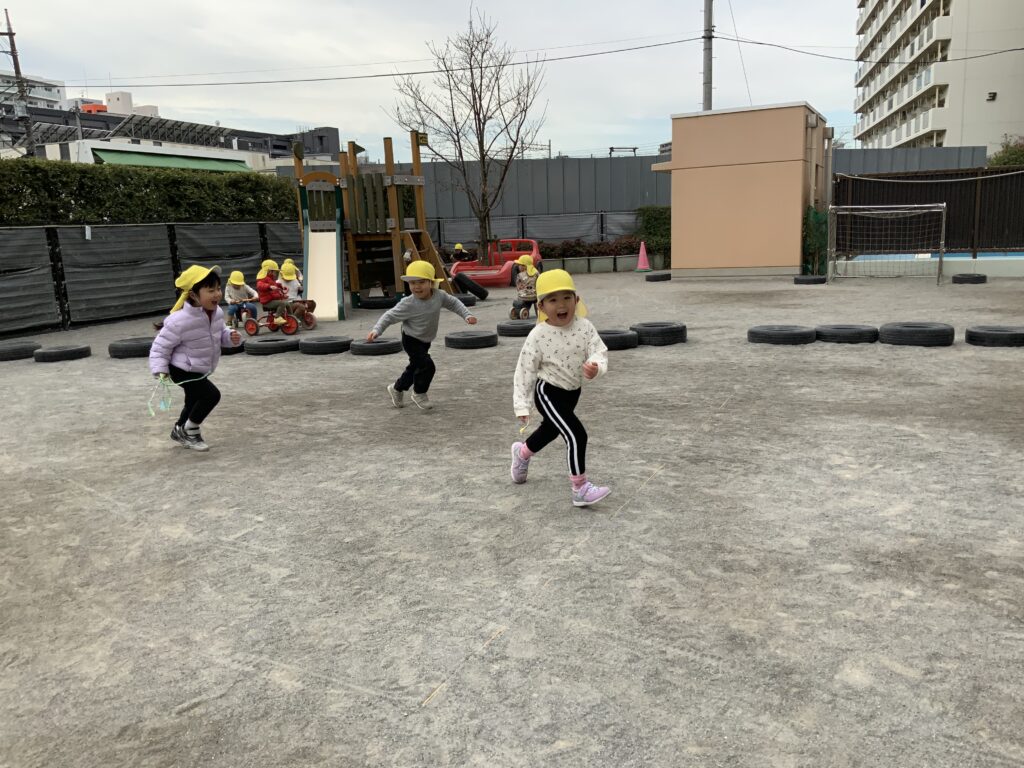 元気いっぱいよーいどん 2026-01-14 いつも賑やかな3歳児クラスれもん組🍋 お天気がいい日は園庭に出ています。寒さなんてなんのその。走り回ったりして元気いっぱいに楽しんでいます。 今年も、みんなが元気いっぱいに過ごせますように