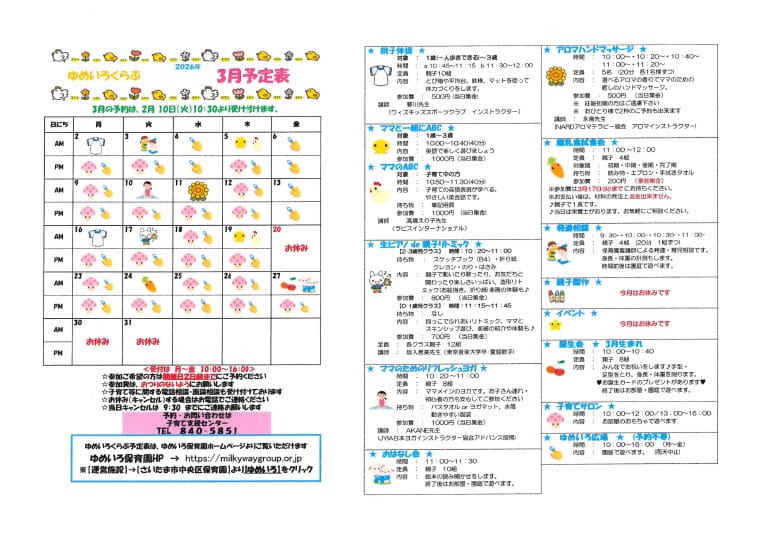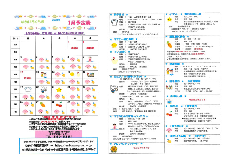 ・未就園児を対象に活動しています ・事前にご予約ください。